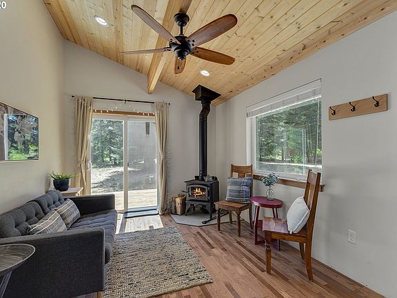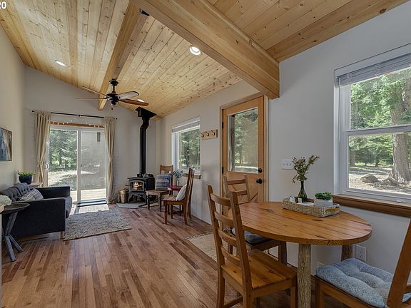 Adorable cottage getaway on 4.9 acres. Stylishly designed w/vaulted ceilings,hardwood floors,spacious kitchen w/butcher block counters & stainless steel appliances,wood stove & much more! Classically appointed Bathrm w/subway tile; flanked by a Bedrm on each side. Living Rm w/sliding door to a huge deck increases living space;perfect for outdoor entertaining. Fenced area for livestock or pets. Property is a mixture of grassland & trees. A magically peaceful property you won't want to miss!