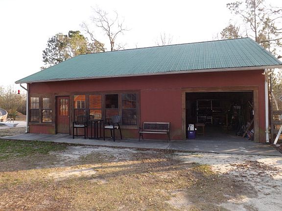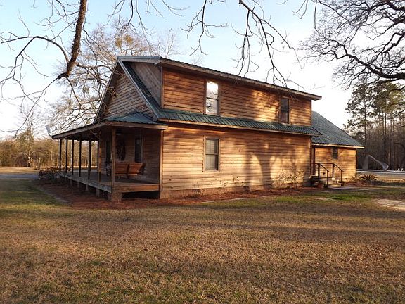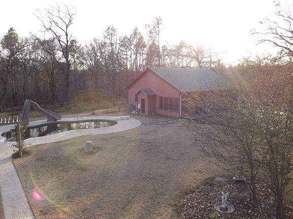 Beautiful country home nestled in the pines!!! Only 7 miles from town. 4 bedrooms, 2 1/2 baths, lots of space and storage. In ground swimming pool with slide. Large outbuilding with plenty of storage and 'man cave'. Porches on 2 sides of the house. Sunroom. 4th bedroom is located over carport and features balcony overlooking pool. 2 bedrooms with jack-and-jill 1/2 bath upstairs, master suite downstairs and another full bath downstairs. Large laundry area with storage and room for 2nd refrigerator. Extremely unique property... must tour to appreciate!