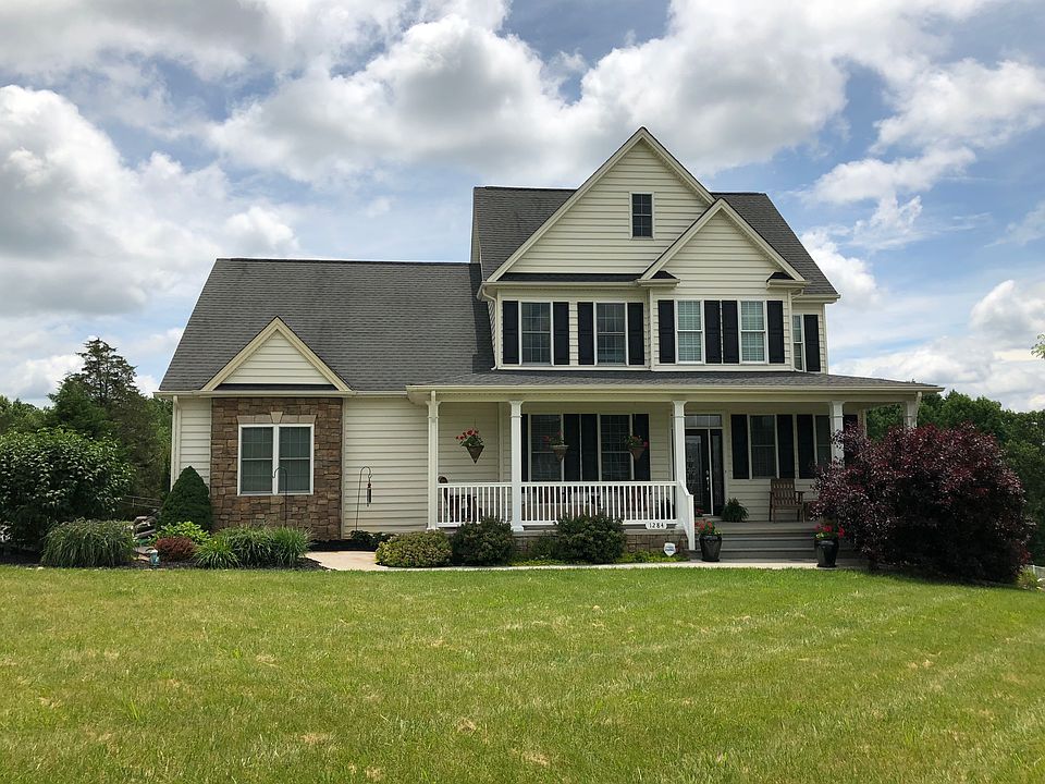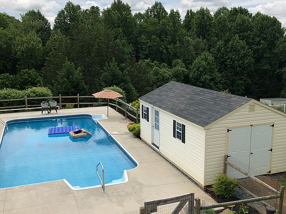 Very nice 3800+- sq ft 2 story home w/mountain views,2 master bdrms & inground salt water pool.Situated on 1.23 acres this home offers a 2 car garage & newly refinished hardwood floors.The 1st floor has a 2 story entry foyer,1/2 bath,formal Dr w/columned entry from the foyer,LR w/gas log FP,& French doors to deck,kitchen w/ granite counter tops, under mount sink, pass thru to LR & breakfast bar, lite,brite breakfast area,laundry room,master bdrm w/trey ceiling & full master bath w/walkin closet & new ceramic tile shower w/glass door & jetted tub w/new ceramic tile surround.The 2nd floor offers a large foyer area,2nd master bdrm w/full bath, 2 more bdrms (one that is huge ) ,a full hall bath.There is a terrace level den w/ gas log FP,workshop area (RI bath)& French doors to a concrete patio area w/hot tub.The pool area is beautiful & has a 20x10 storage/pool building & canopy,new liner 2017.The deck has Trex decking & vinyl picket & rail.Rounded drywall corners.Poured concrete walls