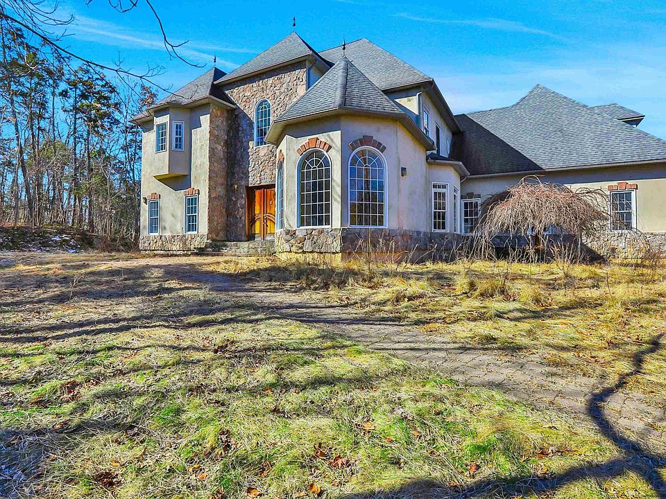 Incredible 23.9 acre Lakefront estate with privacy, water views and frontage on a lake. A long gated drive leads to a stone courtyard and this distinctive design perched on a bluff overlooking the lake. Stunning stonework and stucco exterior welcomes you into almost 4000 SF of living space perfect for entertaining and casual country living. Just a few of this one-of-a-kind home's features include wide board floors, 21' living room with fireplace, formal dining room, gourmet country kitchen, central AC and multiple sets of French doors to huge lake view deck and balcony. The four bedrooms and 3.5 baths include a main level guest room + a sprawling ensuite MBR with magnificent stone floors with a soaking tub and separate shower, and propane fireplace. There's a den/office and a comfortable media room/lounge with a bar and custom built in seating in the walk out lower level. House has very detailed tile work, high ceilings, arched and keyhole doorways. Super private yet all just a short drive to all.