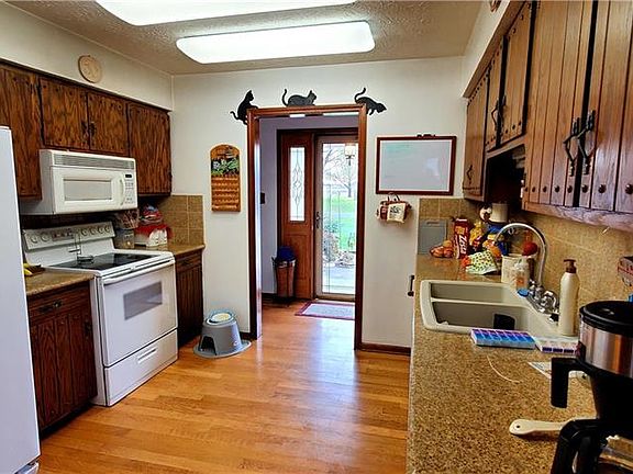 Lovely 3 bedroom, 2 bath stone ranch in desirable neighborhood! Beautifully landscaped .53 acre lot w/welcoming front porch! Nice back yd w/deck, gazebo & 2 great storage barns. Larger barn has ramp w/overhead loft for storage. Great floor plan with living room and family room w/cathedral ceiling & fireplace. Nice kitchen with hardwood floors, granite countertops, tile backsplash & kit. appliances stay! Spacious dining room & big laundry room. Large master bath area with double sink vanity. Recent updates & age of mechanicals include: recent vinyl plank flooring in FR, LR, laundry rm & main bath, water softener-1 yr, furnace & AC-4 yrs w/new ductwork, roof approx 6 yrs, pressure tank-7 yrs, main bath tile, tub & sink reglazed. MUST SEE!