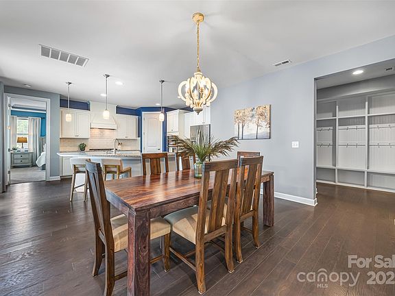 This charming Cottage Style Home in the popular Cadence Community features a primary BR on the main with a sitting room or flex room, a 2nd BR on the main, a spa like primary bath with a walk in shower, dual vanities and amazing customized closet that pass through to the laundry, mud room and drop zone. The open plan boast a large kitchen island, wall oven, gas cooktop, designer subway tile, a custom hood vent, elegant granite counters, a gas fireplace, a relaxing side porch with a remote controlled pergola, and a huge private, fenced backyard. Upstairs features a 3rd BR, a walk in closet, full bath, a spacious bonus room with a built in media console, a dry bar w/ a beverage refrig and surround sound. This home also features a walk in attic, a storage closet under the stairs and additional storage in the garage. Enjoy maintenance free living with lawn care included, plus a community pool, sidewalks, walking trails, and easy access to parks, Lake Wylie, shopping, restaurants and more!