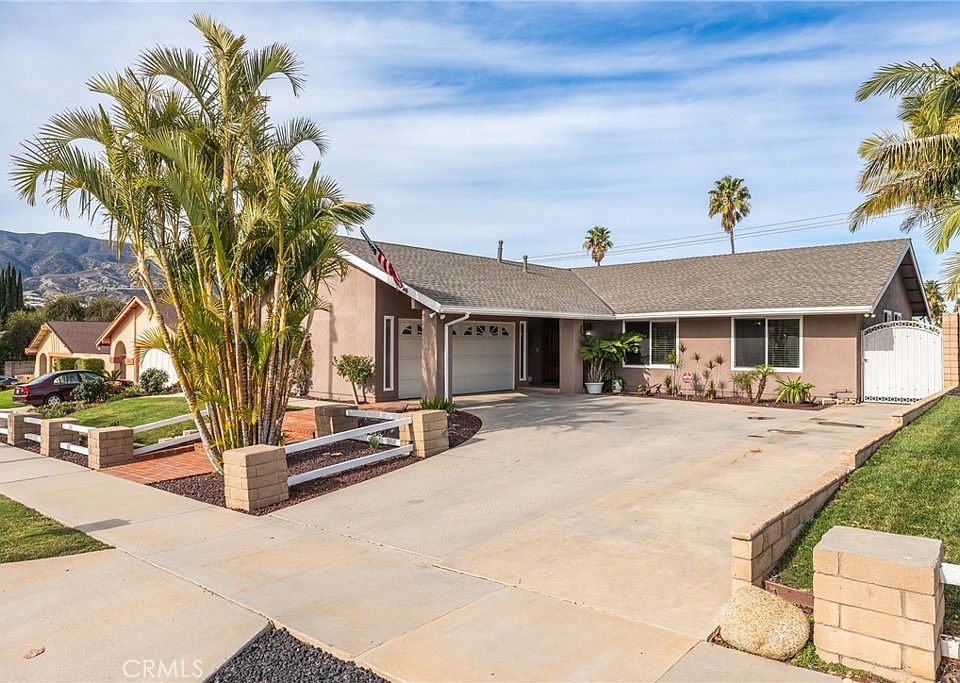 Outside, the beautifully landscaped yard offers a perfect setting. Stunning views and sunsets will take your breath away. The patio area is ideal for dining and the lawn provides plenty of room for activities or gardening. The yard offers avocado, grapefruit, tangerine, orange, and peach trees. The roof and gutters have been replaced within the last 2 years, giving you peace of mind. This gem is located just minutes from the freeway, schools, and shopping saving you much valued time.
