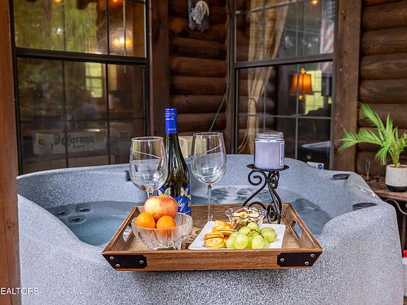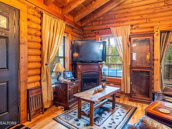 Have you ever dreamed of owning a true log cabin? Here you go!!! This gem delivers so much to love!!!! Tucked in the woods at the top of a dead end drive on almost 3 acres with walking paths and your own cave ! Located just around the corner to the new Anakesta!!! The cabin offers 2 full baths, floor plan is for a 2 bedroom cabin, one wall was left off to have a larger open floor plan. (septic permit is for 2 beds) Wall could be put up, closet and window already there. Cabin can sleep up to 6 . Property can be put on a STR program. ( income projection from a property mgmt company in documents), Deck has a screened in porch on one end with a TV hook up, on the other end is a beautiful gazebo and in the middle is your gas BBQ and Hot tub. All this with a mountain view!!! In addition to all of this the property comes with a TUFF shed with a metal bottom frame, power and air condition. The shed is currently being used for wood working and the 2 lofts are used for storage, Bring your imagination to turn it into a game room, kids playroom, etc. Also included is a new 2024 Italian water pump(pressure pump). All furniture conveys including patio, hottub, shed. Does not convey some personal items (list in documents), in kitchen a set of dishes convey