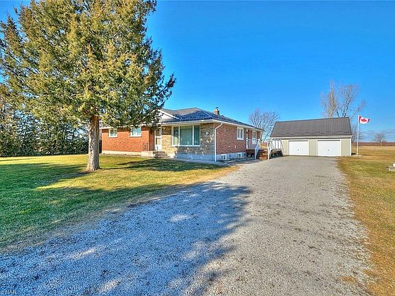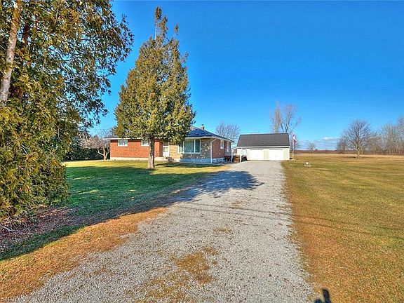 Fantastic 6 Acre rural property surrounded by vineyards and trees in highly sought after Niagara on the Lake location. Enjoy country living while still being in close proximity to restaurants and shops! This property features an all brick 3 bedroom, 1.5 bath Bungalow as well as 2 large detached garages/workshops. The oversized bungalow features a bonus main level Family room with propane fireplace in addition to the living room. Large windows with built-in window seats in the family room overlook the stunning backyard views of the vineyards and peach trees. The immaculate kitchen features a large breakfast bar, plenty of cabinetry, and built in stove top and oven. The lower level is partially finished offering a large rec room area and plenty of space for storage. The first detached garage offers hydro, 2 large garage doors and a 2nd level providing plenty of space for extra storage. The 2nd garage/workshop has hydro and is heated with a propane furnace which is perfect for the hobbyist. Other features include hardwood flooring, metal roof with transferrable warranty, oil tank replaced in 2023, generator, 2 large decks, flagstone patio, and covered patio off garage.