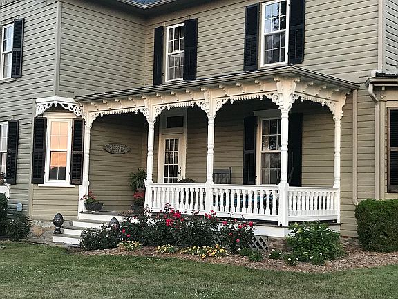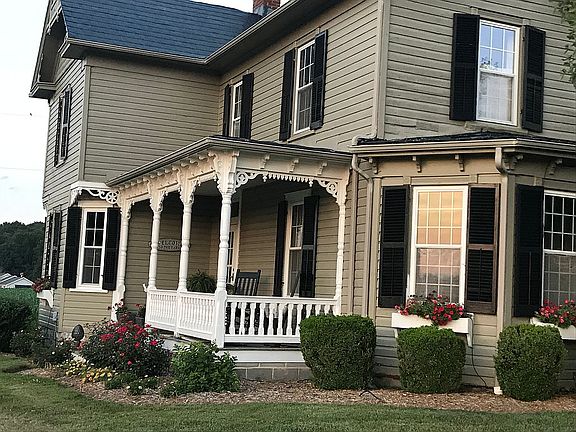 Meander up a tree lined drive and discover tranquility and beauty with this circa 1885 farmhouse loaded with character. A large front porch offers great space for rocking chairs and relaxing. The formal living and dining rooms offer picturesque spaces for entertaining, while the updated farm kitchen will be an inviting part of the home. The dining room has been completely renovated. The kitchen has exposed beams in the ceiling, new granite counters, and new stainless appliances. Beautiful wood trim and details throughout the home. Original floors throughout recently refinished. Tilt-in windows for easy cleaning. The den features a fireplace with a cast iron surround. The house offers 4 bedrooms and 2 full baths. The first-floor bedroom has an attached office/craft room as well as two large closets. Abundant storage in bedrooms. New Kohler toilets in bathrooms. Breathtaking views from every window! Featuring about 35 acres with fenced open pastures, large barns, garages, and multiple outbuildings, this home offers boundless possibilities. Outbuildings have electricity and plenty of shelving. Workshop ready for wood stove or potbelly. Two working wells on the property. Located off State Route 262, the home is convenient to the interstate. Whether you are looking for peaceful country living or a farm close to town, this property has what you want!