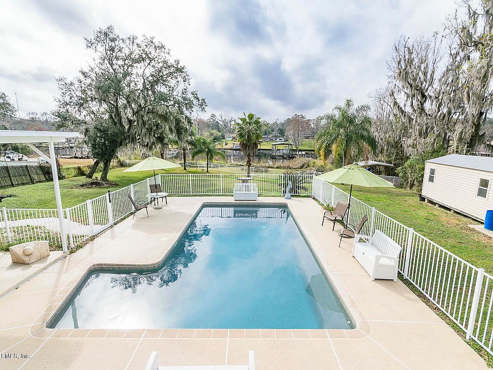 OPEN HOUSE 12-3 SAT. FEB. 16,2019. ESTIMATED 165 Ft. of WATERFRONT WITH THIS 3/2 BEAUTY on Pottsburg Creek! One of the lots w' the most waterfront in the area! NAVIGABLE TO THE OCEAN! 15 Minute boat ride to TIAA STADIUM and the JAGS GAMES! DOCK w/ Electricity and Water, From land around 84 ft. long. BOAT COVER or ROOF and 10,000 lb. DOUBLE BOAT LIFT and a SEA DOO LIFT. The fun continues with the inground 15x30x21 SALTWATER POOL which features a ''bench'' around the interior and ''Cool Decking!'' Wind down at the end of the day w/ the larger model HOT TUB, covered patio and beautiful water views! This CINDER BLOCK home sits on .81 Acre. Owner added 3 inches of Foam Insulation to the exterior and covered w/ STUCCO and BRICK trim. METAL ROOF in 2005 and TRANE AC 2009.