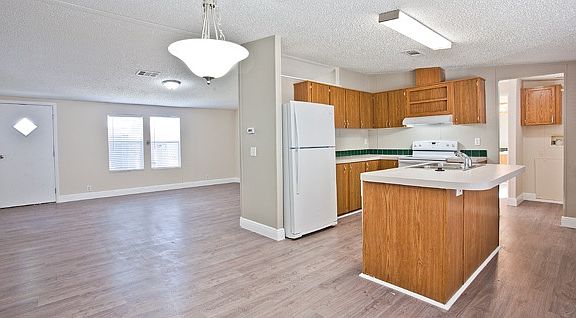 Almond Joy' is a spacious home set amidst attractive tropical South Florida greenery. From the curb, it has a sophisticated air with light brown exterior walls, contrasting white siding, manicured grass and mature palm trees. Decorative shutters frame the windows adding to its appeal. Indoors, there is a large open concept floor plan with living, dining and kitchen combined. The space is bright and airy with ample natural light entering through the wide windows on opposite walls. The focal point of the room is pretty almond toned kitchen cabinetry that adds richness to the ambiance. The entire area has hardwood laminate flooring. The living area is spacious with a partition wall separating the kitchen area a perfect solution for more formal entertaining. The dining space links the kitchen and living area and is large enough for a full-size dining table. The kitchen has ample cabinetry and a long counter top that offers generous workspace. Essential modern appliances in the kitchen come in contrasting white and include a dishwasher, refrigerator and smooth top range. An island with a stainless steel double bowl sink is an interesting design feature in the kitchen. Besides providing additional workspace, it has an overhang facing the dining area, and can double up as a breakfast counter or snack bar. The master bedroom has hardwood laminate floors that add a warm ambiance. Windows on adjacent walls of the room invite in ample natural light and present views of the tropical greenery outdoors. The en suite bath is luxurious with a long built-in counter top with separate his' and hers' basins and storage cabinets underneath. Additional storage is provided by the floor to ceiling cabinet in the corner. Cabaret lights over the mirrors and a large corner tub add sophistication to the bath. Finally, like all homes in this desirable lakeside community you will appreciate off-street covered parking, central air and heat, your own outdoor storage shed, and access to the community's extensive recreational amenities including fitness, tennis, basketball, shuffleboard, putting green, clubhouse, sauna, heated pool complex, lake recreation and more. **TO MAKE AN APPOINTMENT TO SEE THIS HOME, PLEASE CALL DEE MYERS, LISTING AGENT AT (954) 858-5770**