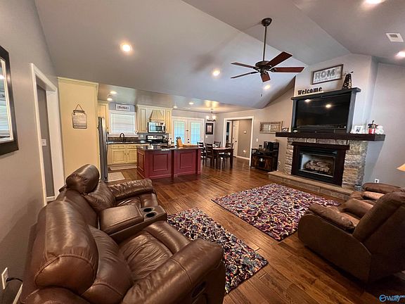 - Features: 10’ + Ceiling, Ceiling Fan(s), Fireplace, Kitchen Island, Recessed Lighting, Smooth Ceiling, Sol Sur Cntrtop, Tile, Tray Ceiling(s), Vaulted Ceiling(s), Window Cov, Wood Floor, Walk-In Closet(s)
