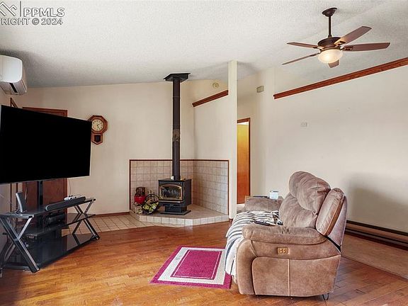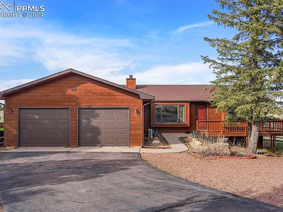 This home located in the coveted Trails at Latigo has 4 beds, 3 baths with 2 car garage and sits on just over 3 acres. The main level features a living room, eat-in kitchen that walks out to the back deck and country views. The spacious master bedroom boasts vaulted ceilings, walk out to deck, attached full bath with double vanity and 2 closets. There are 2 additional bedrooms and a shared full bath on the main level. The finished basement features a large family room with walk out and endless possibilities. There is also a large bedroom with 2 huge closets, shared 3/4 bath and laundry room. The back yard is fully fenced however the property extends past the fenced area. There are 2 storage sheds and mature trees. Feel miles away yet only minutes from most amenities and a quick commute to Colorado Springs.