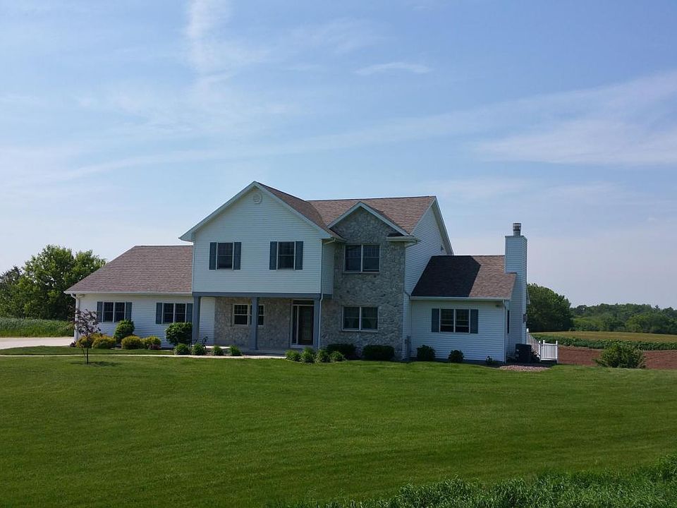Amazing 4 bedroom, 3 1/2 bath Custom home on over 20 private (much of it wooded) acres of your own quiet retreat. Attention to detail for this parade of homes star! Inviting pro kitchen w/ large island & prep sink. Library (wall of shelves), Large formal dining room, finished lower level(with kitchen/bar)that has full sized windows & walkout level to nice entertainment area, 2 fireplaces, large 3+ car finished garage with staircase. Home has numerous built-ins, Sunroom w(Slate floors)to south facing deck