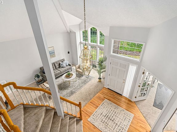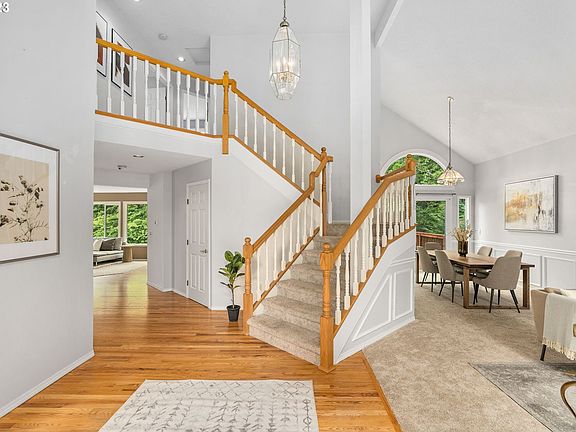 This craftsman designed home sits on almost one half acre on a dead end street in the heart of Happy Valley. Close to Happy Valley park, schools, nature trails, & creeks. New triple pane windows. Newer carpet throughout, water heater, and primary en-suite bathroom floor. Private fenced back yard with mature landscaping and trees which lead to lower level spring fed creek.