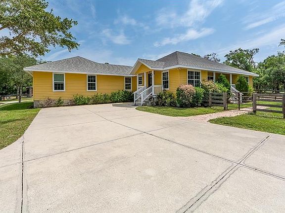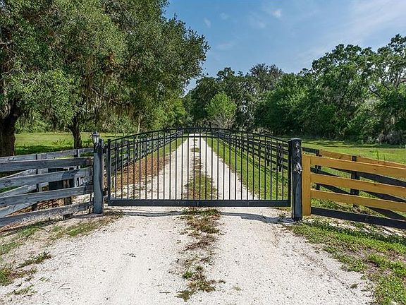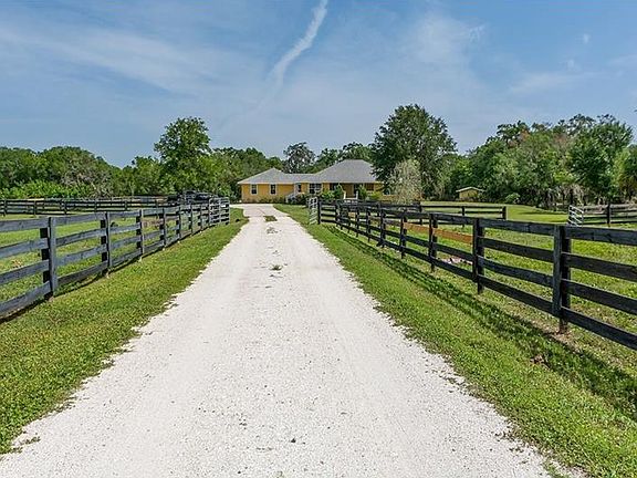 Pure Country, NO RULES! This home is the image that comes to mind when you think about a country lifestyle. Classic farmhouse design with 5 bedrooms, a true wooden front porch that overlooks the front pasture and back porch with a view of the swimming pool and spa and horse barn. Home is built to accommodate 2 families, with a great room, master bedroom, kitchen dining and two bedrooms on side A and side b has a 23x15 great room, washer dryer hookup, private bath and 2 bedrooms. This plan that would work great for in-laws or a teenager retreat! Wood floors, high ceilings, formal dining area create the charm of a southern ranch 5.6 acres located close to I-75 access makes commuting to work in St. Pete, Sarasota, Tampa or Bradenton a breeze. 5 stall barn and tack room, with water, electric and concrete pad plus a 24x19 out building with air conditioning that could be used for storage or party room! Additionally there is a huge covered parking for boats and RV's with a storage room. Pump house for water softener, filtration system and pool equipment. Wood fencing, privacy gate, and wire fencing for your livestock. This home needs some love and TLC, but your personal touches and a front porch swing are all that are missing!