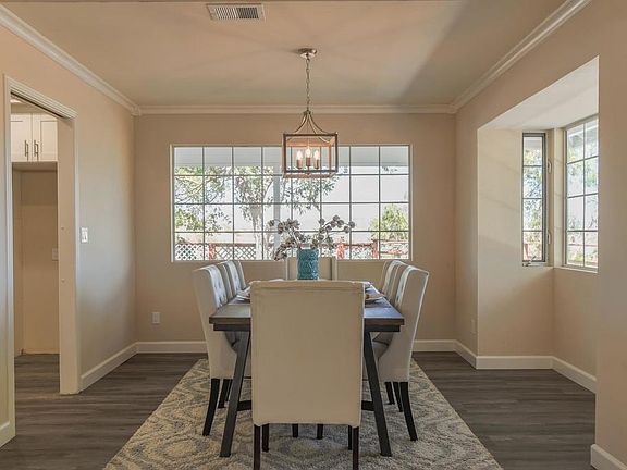 Drive up the gated paved driveway to this Updated 4 bedroom/3 bath home on fenced 1 acre lot with Views! Brick walkway to Double Single Pane glass doors, enter into open entry with a two story ceiling, opens to Living Room and beautiful curved stairway featuring Vinyl steps and flush stair noses. Large, airy living room with plenty of natural light, open dining room and wrap around patio. Make your way into the remodeled kitchen, Quartz counters, new appliances, new plumbing fixtures, garden window looking out to rear patio and yard area. Wet bar right off the kitchen, on your way to the large step down Family Room with Fireplace. Or make your way to a very large Bedroom or Great Office Space with windows looking into rear yard area. There is a separate side yard door that could provide access to the Bedroom/Office - could be used as a room rental. Large Laundry room with builtins and counters, access from the garage. Upstairs are two bedrooms, remodeled bathroom with double sink vanity, tub/shower combo, oversized Main Bedroom with sitting area, fireplace, large walk in closet, some built ins, vanity with double sinks, tub/shower. Home features new Vinyl flooring throughout, fresh paint, some retro accents that are so cool! There are two garages; the attached three car garage with direct access to the house, stair/ladder to a large storage area in the garage attic, and a detached two car garage, with a room above. Studio? Future ADU! You are up on a wooded area lot, with views in all directions.