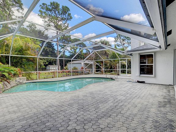 Incredible property on quiet street on North side of Jupiter Farms. Tilt wall, pool home on 1.2 acres fully fenced, gated and private. Great neighborhood and friendly neighbors.3/2/2 split plan with den/office and wood burning fireplace. Screened patio and in-ground pool, accordion shutters, 2016 roof, 24x26 workshop, and 8x12 shed. Horse Paddock. Close to preserves, state parks and Nature Trails. Interior recently painted, updated security system, reverse osmosis system, new pool heater and filter. NO HOA. Close to shopping I-95 and turnpike.