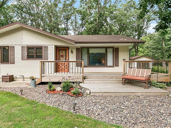 Just minutes from town this charming 3-bedroom, 1 and a quarter bath home, all 3 bedrooms on one level for easy living. Nestled on a two spacious lots that equals .73 acres with mature oaks, two stall attached garage and an additional smaller 1-stall detached garage, steel storage shed, there's ample space for your vehicles and storage needs. Lower level has a finished recreation area, with plenty of room for further expansion. Spend your free time on either of the patios both front and back with plenty of room for entertaining. Enjoy the perfect blend of functionality and style in this delightful property, offering both convenience and a touch of privacy.