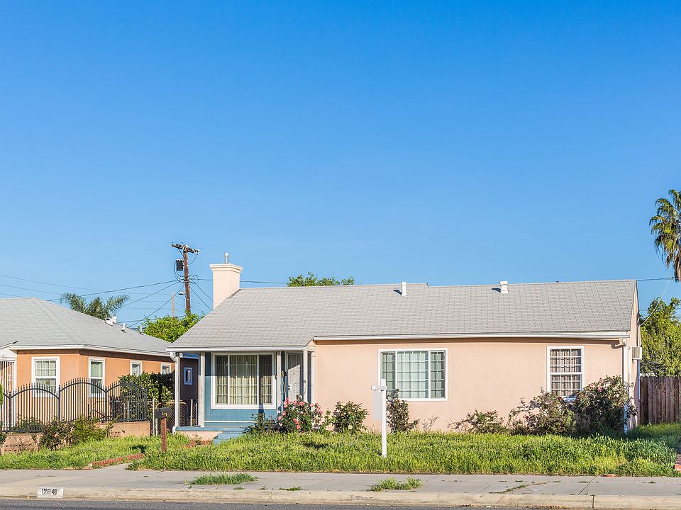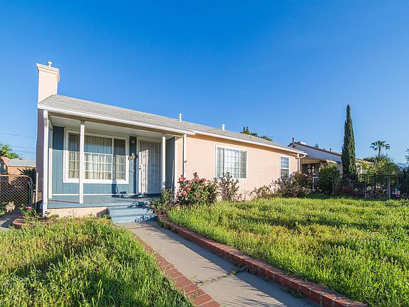 Great Pacoima starter home nestled close to everything. Here are just a few of its many outstanding features: *Eye catching curb appeal with two tome paint scheme and recently installed rain gutters. A flowing 1,600 square foot open floor plan that is ready to move in, and make it your own. Entire home has dual pane windows, living room, dining room have easy to clean tile flooring, Living has a gas burning fireplace, the kitchen boast newer custom cabinets, and pantry, granite counters tops, dual basin stainless steel sink with garbage disposal. All three bedrooms are good size and have lighted ceiling fans. The over sized full bathroom has floor and wall tiling throughout, plus tub shower combo with glass sliding door, newer vanity with granite counter top, medicine cabinet plus extra storage cabinet. There is a permitted 18x24 Square foot den, which gives this home the extra space a large family needs. Laundry hook ups conveniently located in the den. Alley access to the detached two car garage with automatic garage door opener. There is a rolling iron gate to access RV, boat or any toys you may have.