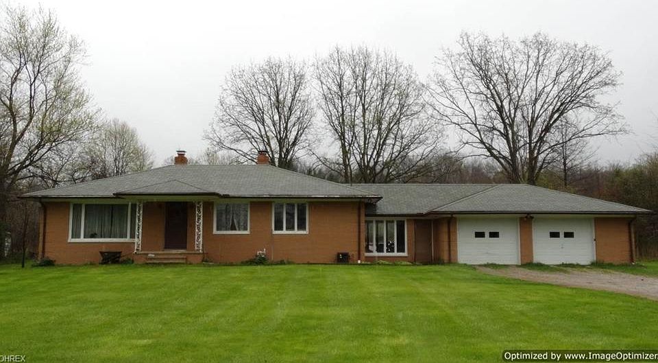 3 Bedroom & 1.5 Bath Solid Brick Ranch set on 2.86 private acres! Large Living Room with wood burning fireplace. 2-car garage attached by breezeway. Full unfinished basement. Great deep lot with mature trees. Priced to sell. Chardon Local Schools!