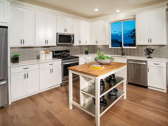 This stunning two-story home features a spacious entry and main floor. You'll also enjoy the contemporary kitchen with beautiful 42-in. upper cabinets in Linen color, Venetian Cream Corian® Quartz countertops, and stainless steel appliances. The master suite features ample closet space and a large master bath shower. Finishing touches include upgraded plank flooring throughout, neutral carpeting in the bedrooms, upgraded light fixtures, and a full basement with 9-ft. foundation walls that's perfect for storage or future expansion. If you're looking for a new home in Northern Colorado, we welcome you to discover KB Home at Barefoot Lakes.