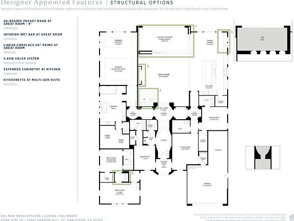 This single-story, open floor plan with soaring ceilings offers 4,765 square-feet with 4 bedrooms and 4.5 baths, which includes a private multi-gen casita with kitchenette and living room. Overlooking the great room and accompanied by a casual dining area, the gorgeous kitchen is the perfect environment for entertaining guests with endless counter space and a sprawling central island. The open-concept great room is the perfect atmosphere for entertaining, with built in corner wet-bar and expansive views through a 90-degree pocketing door of the outdoor living space and canyon beyond. The primary bedroom suite is the perfect retreat offering a spa-like bathroom that features an immense shower, separate vanities, and walk-in closet. Disclaimer: Photos are images only and should not be relied upon to confirm applicable features.