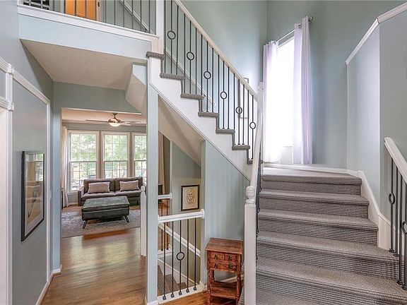 Rare opportunity on a cul-de-sac in the award-winning Olathe School District! This beautifully updated 2-story home welcomes you through a vaulted entryway. The main floor showcases gorgeous hardwood floors and a recently renovated kitchen with new shaker cabinets, quartz countertops, designer backsplash, and plenty of storage--two pantry areas. Enjoy family dining in the kitchen at the peninsula or dining table. The open concept flows seamlessly into a spacious great room with original hardwood bookcases, mantel, and fireplace surround with a panoramic view of the treed backyard through the floor to ceiling windows. The formal dining room is currently being used as an office/sitting room. Step outside to the large deck featuring modern railing, ideal for grilling, family dinners, and relaxation. The primary bedroom features a vaulted tray ceiling with ambient lighting, additional sitting/office space, walk-in closets, and newly renovated bathroom that includes an onyx surround and new onyx vanities. Two other bedrooms boast vaulted ceilings. One showcases a custom, lofted bed with ample headroom above and below for rest and play and study. The finished basement offers a large family room, bedroom, full bath, and additional storage. Walkout onto a large covered deck and fully fenced backyard--perfect for outdoor enjoyment. Bonus: new roof and new sprinkler system!