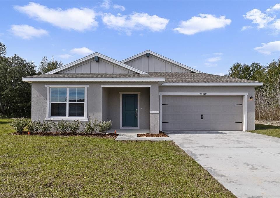 Move to Aspire at Marion Oaks, Ocala's most exciting new construction community! We've started construction on this exciting Daffodil IV home design which features an open layout with 9'4" ceilings, a cozy primary suite, and dining area adjacent to the kitchen. Our popular Loft Look - a designer-curated collection of on-trend finishes - has been chosen for this home. Nowhere does the Loft Look come to life more than the kitchen, which will feature Greyhound Grey cabinets, Artic White quartz countertops, tumbled white artisan subway tile, contrasting matte black fixtures, stylish pendant lighting and more. A close second to that is the primary bath, complete with a crisp white furniture-grade vanity, quartz countertops, tumbled white artisan subway tile on the shower wall, round-framed mirrors over the dual sinks, and more. You'll love the contrasting yet complimentary finishes of the Loft Look which create a cohesive style throughout the entire home. 2" faux wood white window blinds are included, making for an even more seamless move-in experience.