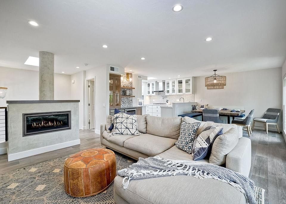 Total remodel designed by a well-known interior designer (profiled in the WSJ and on HGTV) and completed in 2022. No expense spared in creating an elegant and comfortable turn-key weekend or seasonal retreat (or full-time home). Every detail considered, from an upgraded fireplace to a stunning bar that allows you to create cocktails while checking the surf. Ample seating for dinner guests with a custom-build banquette that allows diners an ocean view. Lightly lived-in as a second home and never rented, this quiet end-unit is a short walk across the street to the beach. There is nothing like it in Sea Point or anywhere in Del Mar.