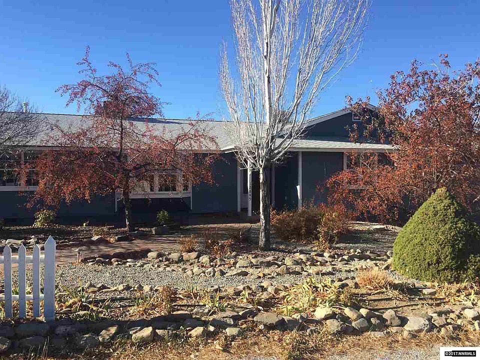 Beautiful home in south Reno with mountain and city views. Front yard is landscaped. Mature trees and plants.