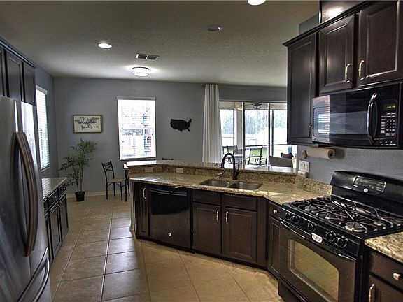 Price dropped to sell!! Why wait for new construction and pay enormous CDD/HOA fees? This spacious and bright 2013, 2503 sq. ft home with 4 bedrooms with a den downstairs, and 3 and a half bathrooms in a gated and community is MOVE-IN READY! The seller is relocating and open to offers! Spend some time outside on the front porch, in the screened-in lanai or in the fenced backyard that will be perfect for fun through out the year. The updated kitchen comes with elegant granite and ample counter space, stainless steel appliances, plenty of pantry and cabinets for all your storage needs, and eat-in area that is bathed in light. This open-concept floor plan gives you high ceilings and ample space as the kitchen opens up to the large family room with one whole side of the room being sliding glass doors giving way to all of the sunshine and views of the backyard and charming Florida landscape behind the house. Share conversations and meals together in the dining room just off the kitchen before heading up stairs to one of the four bedrooms. The master bedroom is your personal and luxurious retreat with light flooding in from the windows complete with a sitting area, extended walk-in closet and a master bathroom with dual sinks, shower and soaking tub. All of your laundry never has to come downstairs because the laundry room is centrally located between the bedrooms and this home will come with the washer and dryer. The three bedrooms and two full bathrooms on the opposite of the master is plenty of room for all.
