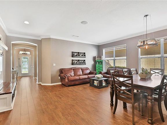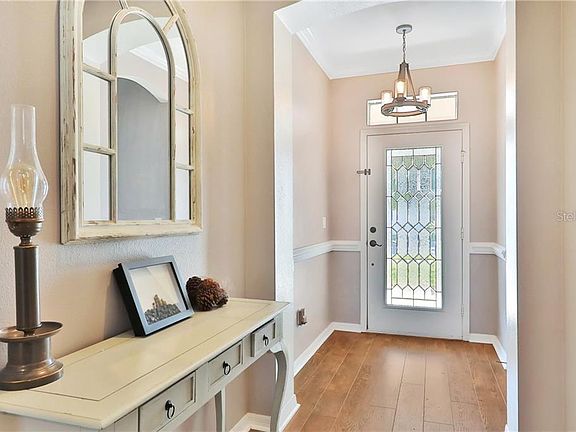 This breathtaking POOL home sits directly on a scenic tree lined street in highly desirable Lakes of Windermere community! This refreshed and remodeled home features 3 bedrooms, 2.5 baths, and a bonus room that could be used as an office/den/playroom or converted to a 4th bedroom. Enter to a beautiful floor plan with formal living and dining room with a large open concept. Enjoy views of the backyard and screened pool from the family room, kitchen and dining nook. Beautiful laminate flooring leads you to a truly fantastic kitchen with stone countertops, 42" cabinets, large island and stainless steel appliances. Rest easy in the oversized master suite with trey ceilings, walk in closet and a glass frameless shower. Soak in the sunshine in the private backyard that is great for entertaining, while enjoying the solar heated saltwater pool (installed October 2013, solar in 2017) complete with a sun shelf, umbrella holder and bubbler fountain. Relax under the large covered patio with 2 ceiling fans and built in TV center while enjoying conservation views with no rear neighbors and a white vinyl fence. This exquisite home features crown molding throughout and lovely built-in features. Exterior of the home painted in 2018 and energy efficient two-speed HVAC installed 2016. The community features a community pool, basketball court, 3 playgrounds, a fishing dock along with tennis and volleyball courts. Just minutes to Disney World, Hamlin, and situated in a wonderful school district, a must see!