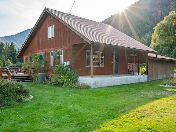 Cozy and very comfortable home with the charm of yesteryear right down to the refurbished original wood flooring and window wraps. Beautifully remodeled and updated with new luxurious bathrooms and kitchen makeover, new furnace and heat pump and new wiring and plumbing. An incredible setting in the Icicle Valley with amazing 360 degree views and within walking distance to hiking the Icicle Ridge Trail and access to the Wenatchee River! The yard is parklike with an all level and usable acre of lawn for you to play on. The home has been used as a very popular nightly rental so can come furnished with the high end furnishings you see in place making it a move in ready home for you to escape the city life part time or to move in full time and enjoy the peace and quiet you will find here.