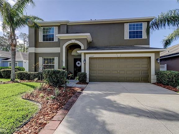 Beautiful 4 bedroom 2.5 bath 2 Story Home in the Desirable Gated Community of the Verandahs with fenced backyard and gorgeous views of the pond. This home has nice curb appeal with new paint, mulch and handsome landscaping. Functional floor plan with both formal and informal areas. This home has a large eat in kitchen with an island, granite counter tops with 42" wood cabinets adorned with crown molding and Stainless Steel appliances There is also a large walk-in pantry. Off the kitchen there is a spacious informal dining area that opens to the family room, perfect for entertaining. Double sets of sliding glass doors open to a large covered lanai with beautiful view of the pond. All bedrooms are upstairs, the huge master also has a huge walk-in closet. The master bath features a garden tub, separate shower and dual sinks. Upstairs there is also an a bonus room which has a closet that could be used as bedroom. This home has been well kept and shows nicely. Great access to Suncoast Parkway making it an easy commute to Tampa.