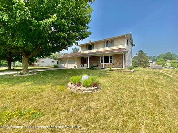 An amazing opportunity to put your mark and updates on this wonderful 4 bdrm/3 bath home. Primary bedroom has a bath and large closet. Home features large living spaces including a oversized front living room, back family room, formal dining room and eat-in kitchen with storage galore. Full basement with workshop, laundry and space awaiting your design ideas. An attached 2+ car garage, rear porch, mature landscaping and walkable neighborhood await your tour. Grand Ledge Schools and just minutes to the Saginaw Hwy retail corridor and I96 exchange.