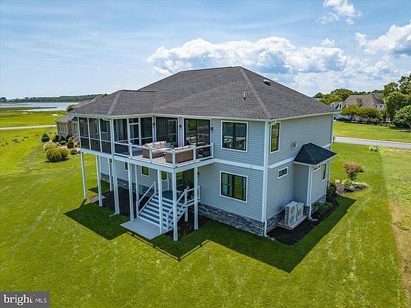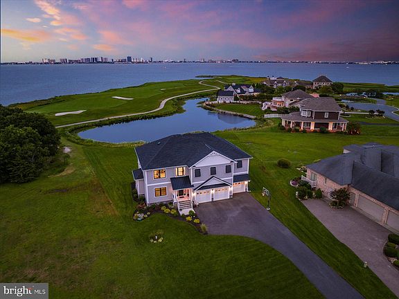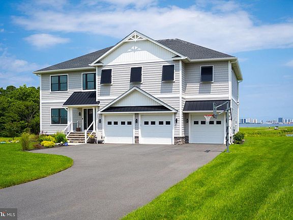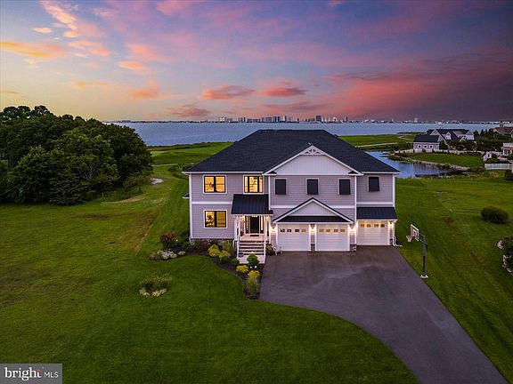 Welcome to this coastal paradise in Bishopville, Maryland! Nestled in the serene Light House Sound golf-course community, this 1-year-old home exudes elegance and charm. Boasting 5 bedrooms and 3.5 bathrooms spread across almost 4,000 sq ft, it offers ample space for your family and guests. Step inside, and you'll be greeted with an abundance of natural light and sweeping views of Assawoman Bay and the Ocean City skyline, creating an airy and inviting ambiance. The reverse floor plan enhances the open living space and maximizes the views, with the kitchen, living room, dining area, primary bedroom and a guest bedroom conveniently located on the second floor. Three additional bedrooms and central living area on the bottom floor provide a private retreat for everyone. The heart of this home is the gorgeous coastal style chef's kitchen. Luxurious, functional and visually striking, it’s equipped with top-of-the-line stainless steel appliances and elegant quartz countertops. The centerpiece is the large island, perfect for meal prep, casual dining, or gathering with loved ones. Each of the oversized bedrooms was designed with comfort in mind, allowing you to unwind and relax in your personal haven. The craftsmanship of this home is exceptional. Crafted by the renowned Iacchetta Builders, every detail is exquisite. The thoughtful craftsmanship is evident in every corner, showcasing attention to detail and a commitment to quality. The framed elevator shaft gives you the option to add an elevator, enhancing accessibility. The 3-car garage provides ample space for your vehicles and storage needs, ensuring convenience and organization. One of the highlights of this property is the breathtaking golf course views that overlook Assawoman Bay, providing a sense of tranquility as you soak in the picturesque skyline of Ocean City, MD. Enjoy the best of coastal living on the screened porch or elevated deck, perfect for relaxation and entertaining. Surrounded by a spacious yard, you have plenty of room for outdoor activities and potential landscaping projects. Plus, being just minutes away from the sun-kissed beaches of Ocean City, MD, you'll have an endless array of leisure options and beachside fun. This coastal gem presents an opportunity to experience the best of coastal living, with nearby beaches just minutes away. Embrace the tranquil and laid-back lifestyle, and make unforgettable memories in this coastal haven. Don't miss the opportunity to call this exceptional home yours—a perfect blend of luxury, comfort, and coastal charm. Come and experience the serenity and splendor that Light House Sound in Bishopville, MD, has to offer.