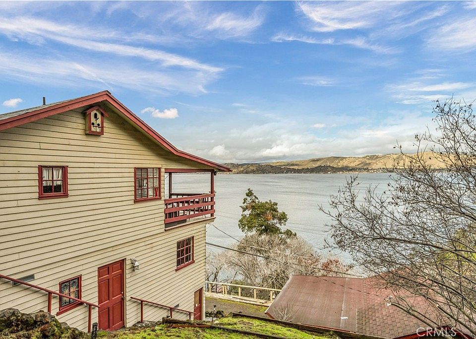Welcome to your dream home—a captivating retreat that brings the enchantment of a treehouse to life. This home offers a unique blend of tranquility and luxury. Ascend the marble stairs to the front door, and let the breathtaking panoramic views of the lake unfold before your eyes. The home has a large 2-car carport with attached storage or workshop space. The covered deck off the living room beckons for outdoor living, equipped with ceiling fans to ensure comfort throughout the seasons. Soak in the hot tub with its lake views, or savor morning coffee on the deck while planning lazy afternoons in a hammock. The covered patio at the back of the house has built-in BBQ, perfect for entertaining. Step inside the home, the interior has tongue and groove wood walls, and marble countertops in both the kitchen and the upstairs bathroom. There are spectacular lake views from nearly every room. The open floor plan seamlessly connects living spaces upstairs. Two stained glass windows stay with the house. Upstairs features a living room, kitchen, dining area, and a 3/4 bathroom with a shower. Downstairs includes two bedrooms, a laundry room, and a full bathroom. With ample parking and an under-house storage area including an area for a wine cellar, you are set up for a comfortable life. The property is one of the only ones in the neighborhood with its own well and water filter, sparing you a monthly water bill of $125. For the watersports enthusiast, a community-owned beach awaits just a short stroll away. The co-owned beach has an annual of approx. $300/year, you gain access to 230 feet of deeded beach rights, complete with a dock/pier, shared by a close-knit community of 24 owners. This is not an HOA; just a community-owned beach and dock with deeded beach rights. Fish from the dock, launch your kayak from the beach, swim or just sit by the lake. Embrace a lifestyle of elegance, comfort, and natural beauty in this updated haven.
