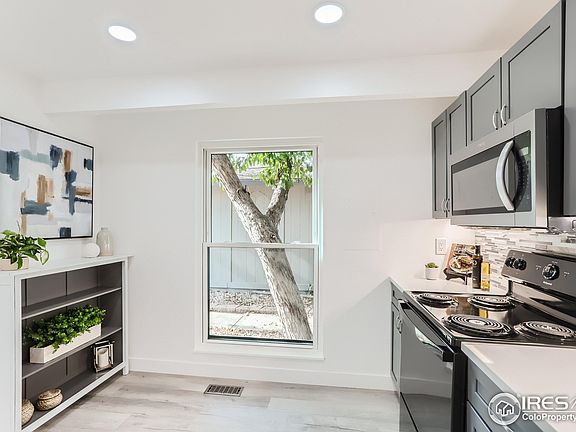 When they talk about a premium location, this is what they mean. When they wanted open space and trails nearby, this is what they desired. When they ask for best restaurants, best schools and best grocery? We delivered, here at 1285 Bear Mountain Drive, Unit D. A sought after contemporary end-unit with an open and bright main floor living area. The renovated kitchen, including custom soft-close cabinets, glass tile backsplash and bright white Caesarstone countertops is gorgeous. With new luxury vinyl flooring, carpeting and new paint throughout. Enjoy a dining room and living area with large windows and a modern, custom tile wood-burning fireplace. Bring the party outside to a large private back patio among the trees. This is unique layout here with 3 bedrooms and a full custom renovated bath upstairs, a full renovated laundry room, bathroom and large bedroom in the basement. Newer HVAC and air conditioning, vinyl windows and walk-in primary closet are a few of the features. Tucked-away in quiet and established Bear Creek neighborhood high atop Table Mesa, this rarely available end-unit, 2-story townhome with full finished basement boasts $50k in updates and renovations. With an adjacent 1-bay garage and dedicated off-street parking, yard-space buffer and seasonal Bear Creek, this one leaves nothing left to do but smile, smile, smile! Walk to parks, gardens, award winning schools, shopping, grocery, dining and miles of trails nearby in the Boulder Mountain Parks and Open Space trail system. Your home search has finally been rewarded!