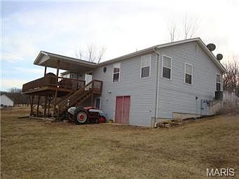 GREAT MINI HORSE FARM. 12x40 lean to with 4 10X10 stalls. 4 cross-fenced pastures with gates to each. Kitchen has lazy susan, flat top elec range, microwave, dishwasher, refrigerator and built-in oven. Bay window in breakfast room. Living/dining room with vaulted ceilings, plant shelves and walkout to covered 13x30 deck (3 yrs old). Heil Hi-eff propane furnace and the 1000 gallon propane tank stays. Heating bills are very low. Two bedrooms and two baths on main floor. The FWO partly finished basement offers a lovely family room with eating area, 3rd bedroom, 3rd bath, 8x9 laundry and 20x26 storage room (which has double doors to exterior). All flooring in home and door to deck were recently replaced. The setting is so very private and located on county road. Just 4 miles to I-44 in Bourbon.