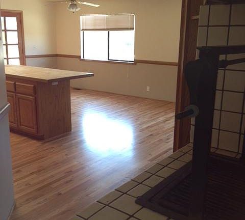 Large kitchen with island and hardwood floors, lots of windows. Spacious driveway - room to park your truck, rv, or boat. Fireplace, laundry hookups inside, 2 car garage. Bedrooms are all small and there is no master bedroom. Currently occupied, do not disturb the tenants. Shown with completed application. Tenant pays utilities. Gardener provided