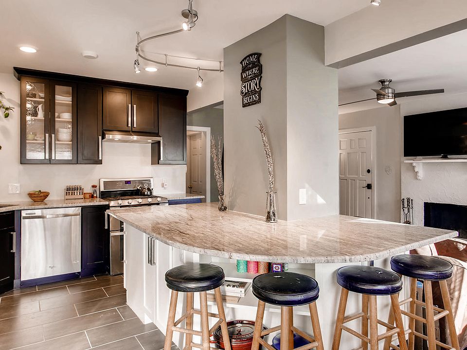 Great location for this RANCH home with 4 beds/2 baths in Aurora. You will love this fully updated and modern kitchen that was designed by a professional chef! Walk into your home with new kitchen appliances, main level refinished hardwood flooring, fresh paint on entire main level and newer windows.Two wood burning fireplaces that have been recently certified. New furnace, hot water heater, new wiring on main floor, new plumbing and roof in 2015. There is a renovated flex space in the basement with a full walk out and 2 bedrooms with one as NON conforming and a ¾ bathroom. Separate basement entrance makes for a great rental opportunity. Two covered patios, front driveway and three off-street parking spaces in back in addition to a one car detached garage with built in storage. Solar panels are owned and evaporative cooler with thermostat is roof mounted. Minutes away from growing Stapleton and Lowry. Call today to set your private showing!