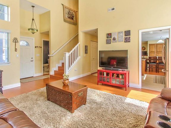 Gorgeous two story home on a corner lot of a desirable neighborhood. Open formal living room with vaulted ceilings, plenty of natural light and sliding doors to the back yard. Laminate flooring, tile in the kitchen, granite counter tops, stainless steel appliances and new dishwasher. The dining area and family room are highlighted by a beautiful fireplace. Fireplace is highlighted by a new fireplace insert. Solar panels are OWNED not leased. Home has been updated with a new furnace. Large backyard perfect for outside family gatherings.