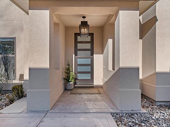 Nestled in the heart of SE Boise, this stunning home blends Mediterranean-inspired charm with modern elegance. The thoughtfully crafted interior offers both style and comfort featuring vaulted ceilings, expansive windows and generous living spaces filled with natural light, creating a warm and inviting atmosphere. Exquisite chef’s kitchen, designed for culinary excellence and entertaining, boasting stainless steel appliances, gas range, marble countertops, large island and custom cabinetry that combines functionality with beauty. The luxurious main-level master suite serves as a private retreat, complete with a spa-like en-suite bathroom. Unwind in the soaking tub, enjoy the walk-in shower, and appreciate the dual vanities, premium fixtures, and a spacious walk-in closet. Step outside to your secluded courtyard, a serene space perfect for relaxation, al fresco dining, or savoring quiet mornings. Ideally located near Bown Crossing, the Boise River, and greenbelt offering convenience and low maintenance living.