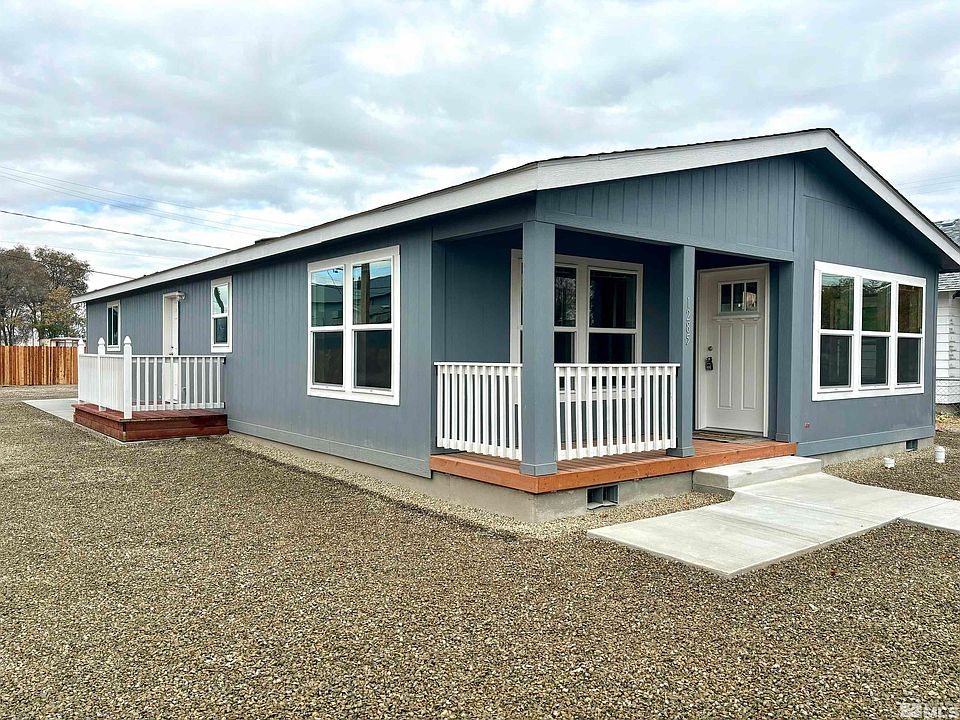 Location, Location, Location! This beautiful brand new 2024 home sets right next to the Pershing County High School on an oversized city lot. 1552 square feet of open living space. Lots of windows offer a bright, light, airy feel. Open kitchen, dining room and living room great for entertaining. Kitchen sports all stainless-steel appliances, farm sink, built in microwave, dishwasher, and garbage disposal. Dual tier island is a cook's dream offering extra seating and a lower prep/counter space., Beautiful modern grey color palate. Primary bedroom has an over-sized double closet and lots of windows for natural light. Primary bathroom has separate vanities, leisure tub, and oversize shower. This home is fully electric with recessed LED can lights, 40- gallon water heater, vinyl frame low E dual glazed window, high ceilings. Exterior has a cute front porch, sidewalks, fully fenced yard. Located in Lovelock (Pershing County) about 92 miles from Reno. This home is a must see!!!