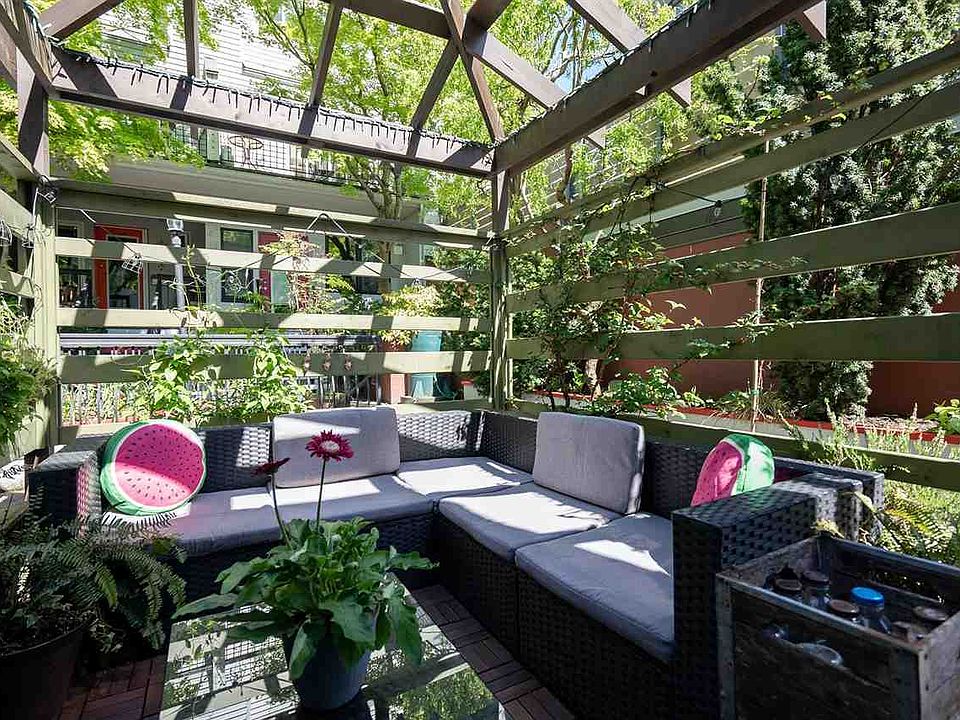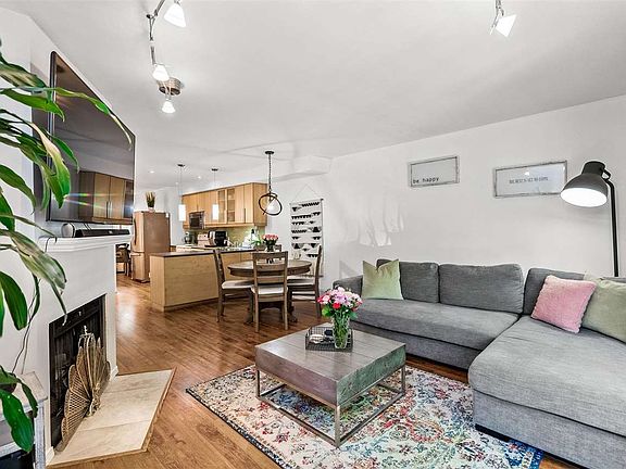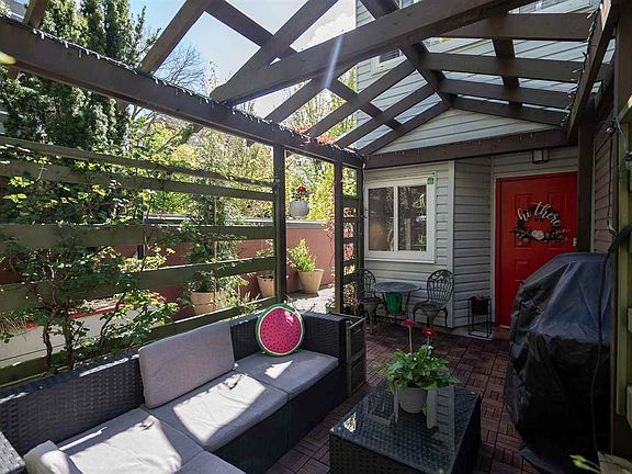 Welcome home to your own West End HOUSE-LIKE Townhome STEPS to English Bay Beach! Nobody above you with a HUGE bright secured courtyard oasis PATIO perfect for kids, gardeners, and outdoor dining/BBQing! Feel secure with your own private entrance with no lobby or elevator to worry about! The open plan main floor has an updated open plan kitchen, a home office, recent hard flooring, woodburning fireplace, and 2nd balcony off the bright living room with a skylight! Upstairs enjoy two separate bedrooms and a beautiful updated bath with Solatube skylight. Solid complex with a proactive strata. Includes parking and locker & insuite washer/dryer. Call now to book a private showing. Open House Saturday 2-4pm - First showing at the open house