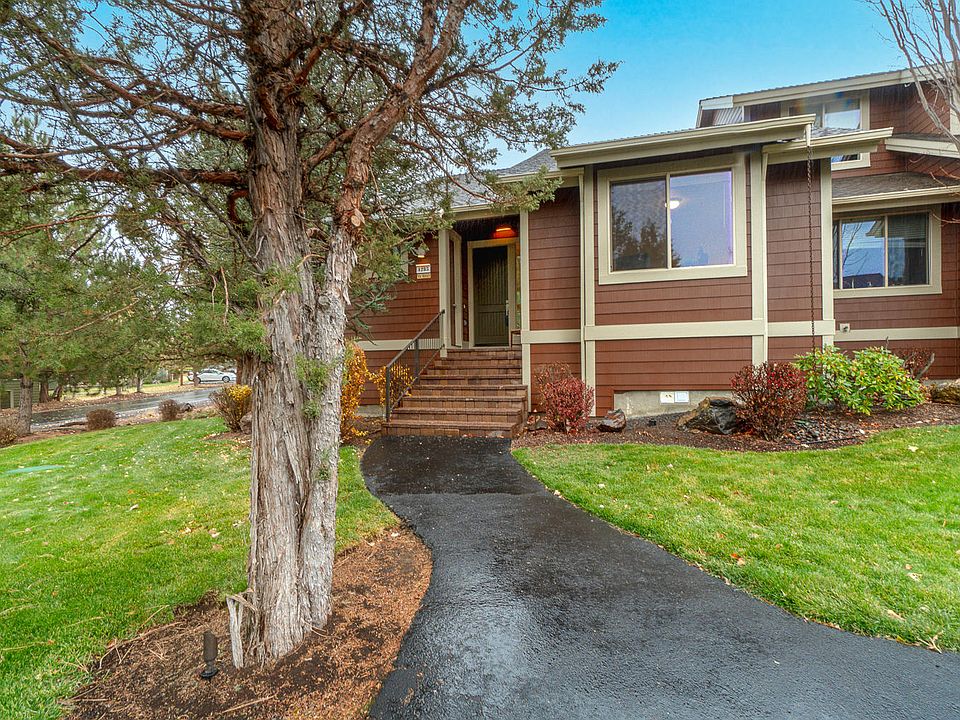 Beautifully furnished one level in Creekside Village at Eagle Crest Resort! Great room floorplan with soaring ceilings, walls of windows, gas fireplace and built-in entertainment center. Expansive paver patio overlooking common space. Master suite with dual vanities, large soaking tub, and walk-in shower. Guest room, second full bath, and two storage rooms. Eagle Crest Resort is home to three 18 hole golf courses, three sports centers, a spa, and miles of trails.