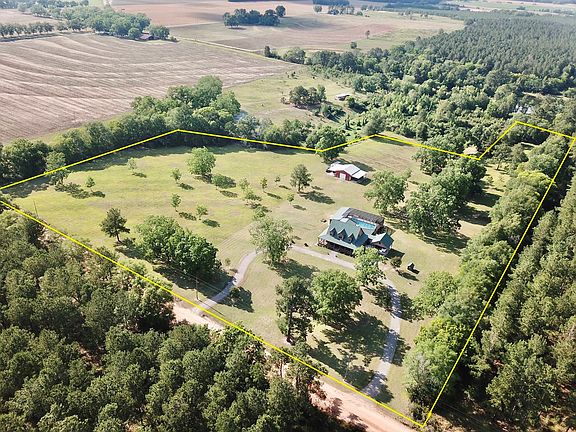 Home and 9 acres - 3bed/3.5bath - 3040sqft Enclosed pool - 30x36 barn This is a custom home w/ wraparound porch - 2 car carport Stand and seam metal roof Inside features an open floorplan - 18ft high ceilings in living room - huge stone mantle and gas fireplace - wood trim - Hardwood floors and tile. Real wood, custom cabinets - Granite countertops - Stainless steel double fridge - tile backsplash - huge pantry - laundry and extra pantry also located just off the kitchen. Master suite features a large bedroom, Jacuzzi tub, separate tile shower, and huge walk-in closet! Great location - just N of Hartford on Macedonia Rd Alabama 9 acres of mostly open land/hayfield - Pecan trees - Circle Drive 30x36 barn also has 16ft lean-to's on each side - screen enclosure over the pool and back porch area. Pool house features 2 rooms and an additional half bath. Additional acreage available w/ large pines and creek frontage - approx 102+/- acres