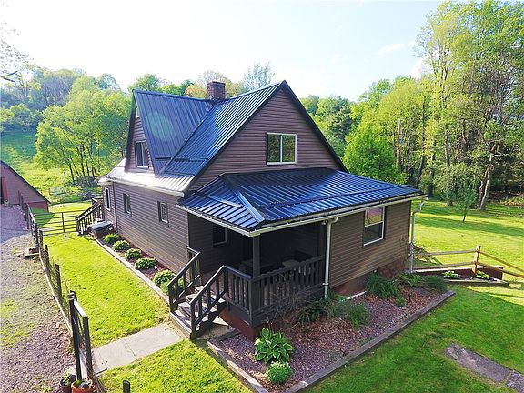 Looking for farm life living at its very best? Maybe just country living?! Well this is the ONE for you! Great home, acreage, barns and land with this one of a kind property! Peaceful, serene and quiet with hardly any neighbors. This 2 bedroom (one is captive), 2 bathroom home sits on 4.99 acres and comes with a detached A-frame garage with a barn underneath, a large outbuilding currently used as a barn with stalls, shelter sheds, chicken coop area, a brand new riding arena, newly constructed electric fencing and much more. It is the perfect place to raise your animals and the stream is an added convenience for that as well! Totally the perfect property to enjoy as a farm or a tucked away cabin!