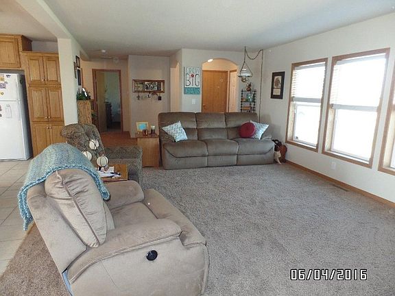 Beautiful well designed Modular home located on 2.98 Acres located in country! Horses allowed! Floor plan open with a efficient, lovely kitchen, huge eating bar, neutral colors, metal building 72x52', round steel bin , storm cellar.Appliances sold as is. Reserved w/d, freezer, and refrigerator.