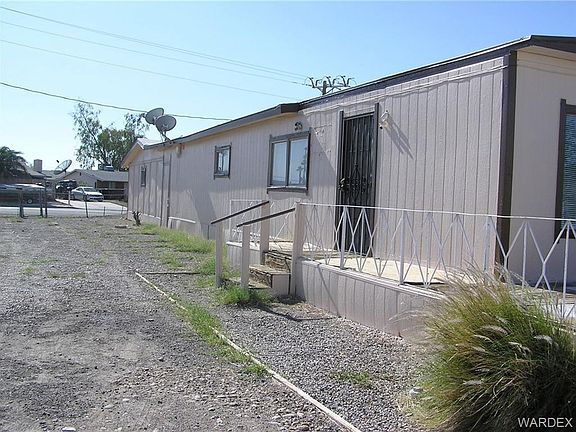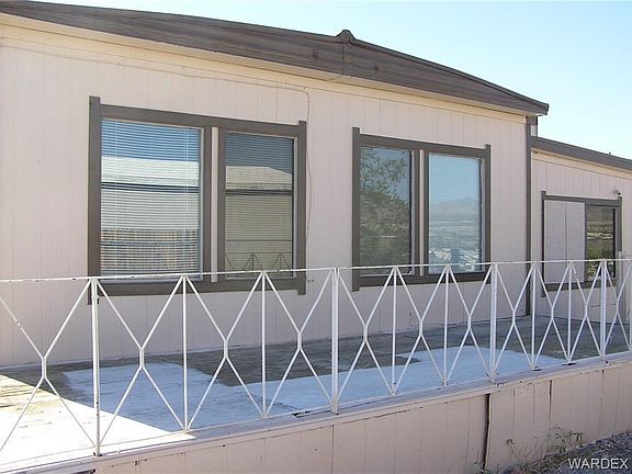 Views of Laughlin and Arizona mountains. Bring your handyman as this is a Fixer being sold As-Is. This 1800 sq ft Manufactured home has an open floor plan, 3 bedrooms, 2 full baths, den/office, Arizona sun room, a huge family room, and laundry room all on a 9,130 sq ft corner lot with access from two streets for all your toys or RV. New Elastomeric Reflective Coating, no plumbing leaks and A/C has been serviced. No Owner Carry.