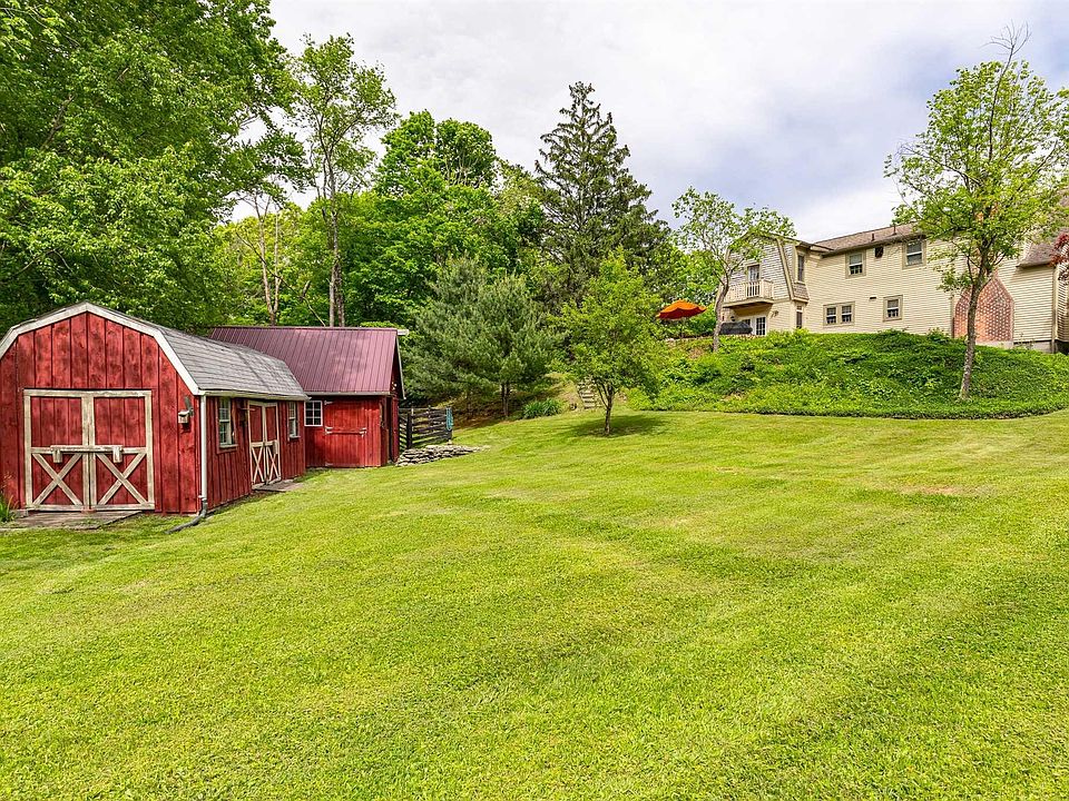 Charming and turnkey, this secluded c1940 expanded cape features classic wood detailing throughout and overlooks beautifully landscaped gardens and pond on 2.53 acres. Enter through French doors from a semi-circle brick terrace to spacious great room with custom built-ins and propane stove. Great room opens to country kitchen with attractive cabinetry, stone countertops and stainless appliances including gas range. Formal dining room leads to well-proportioned living room with brick fireplace and inviting built-in window seat. There is also a full bath on the main level. Upstairs features a comfortable sitting area with built-ins ideal to curl up with a book. The primary bedroom en suite offers vaulted ceiling and French doors to balcony overlooking the brick terrace and rear acreage. Handsomely remodeled primary tiled bath has sliding barn door accent. There are two additional bedrooms and a hall bath. The lower level offers storage, mechanicals and laundry. The brick terrace is perfect for outside entertaining and viewing the landscaped acreage with a pond, mature perennials, ornamental shrubs and trees, hardwoods and enclosed vegetable garden. There are two barns and a paddock for small animals and landscaping equipment. The property is located minutes to the TSP, Poughkeepsie and Metro North, and only 1.5 hours to Manhattan.,FOUNDATION:Block,FLOORING:Wood,Ceramic Tile,Unfinished Square Feet:1000,OTHERROOMS:Formal Dining Room,Great Room,Basement:Garage Access,Interior Access,AboveGrade:2408,ROOF:Asphalt Shingles,Level 2 Desc:PRIMARY BR/BA, BR1, BR2, HALL BA, OTHER,Level 1 Desc:K, GREAT ROOM, LIVING ROOM, DINING ROOM, FULL BA,Below Grnd Sq Feet:1000,InteriorFeatures:Washer Connection,Electric Dryer Connection,French Doors,Gas Stove Connection,Some Window Treatments,ExteriorFeatures:Landscaped,EQUIPMENT:Carbon Monoxide Detector,Smoke Detectors