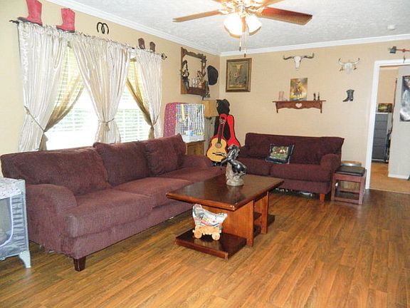 Nice one-level living home on 2.15 acre land . Large, open floor plan with Master Bedroom on one end and other bedrooms on other end. Kitchen, dining and living room are open. Deck on back and 3 stall shed.New septic and lines. Sets on a permanent foundation.